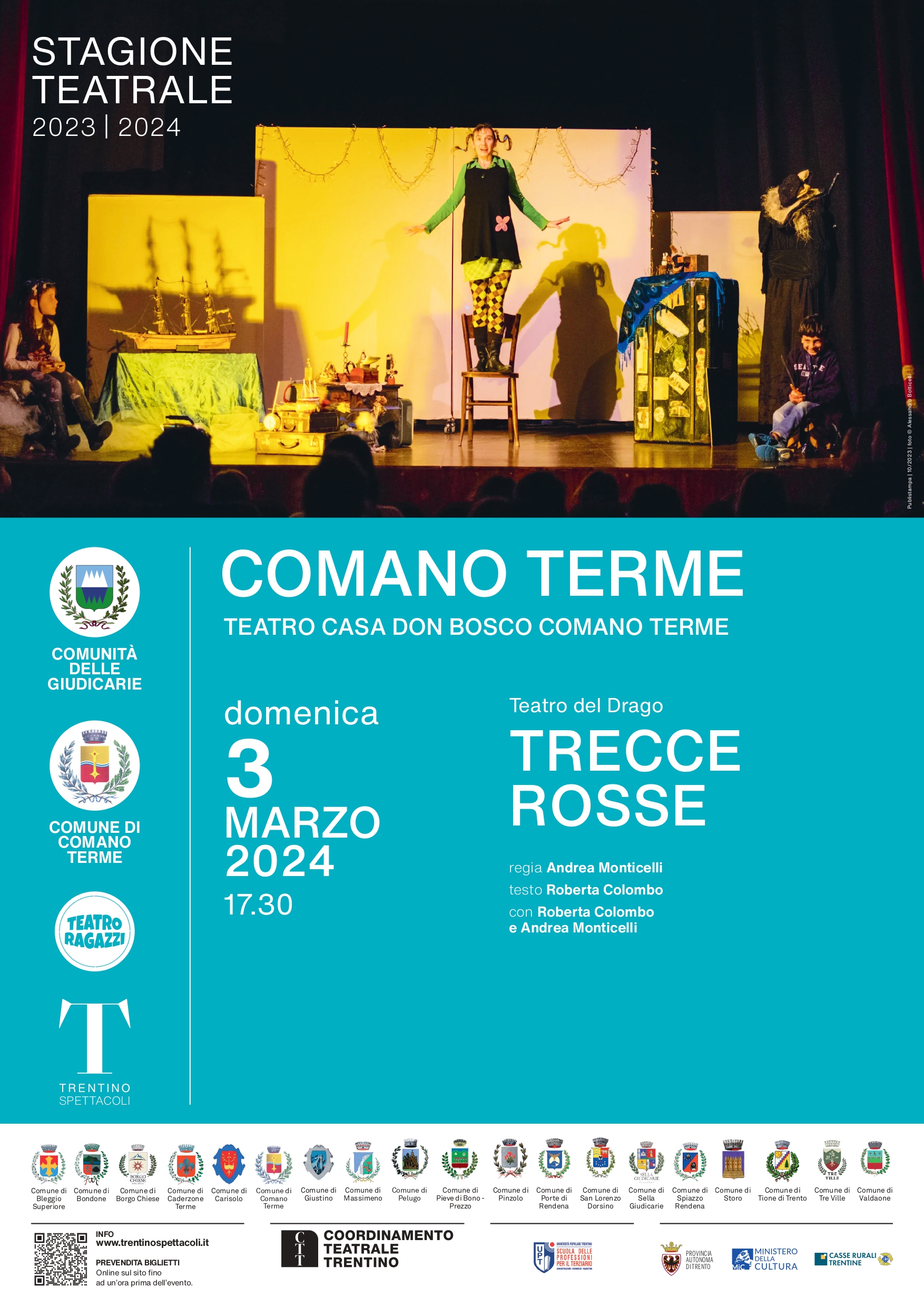 Nell'ambito della stagione teatrale 2023/2024 presso il teatro Parrocchiale don Bosco a Ponte Arche si terrà lo spettacolo teatrale "Trecce Rosse" a cura del Teatro del Drago